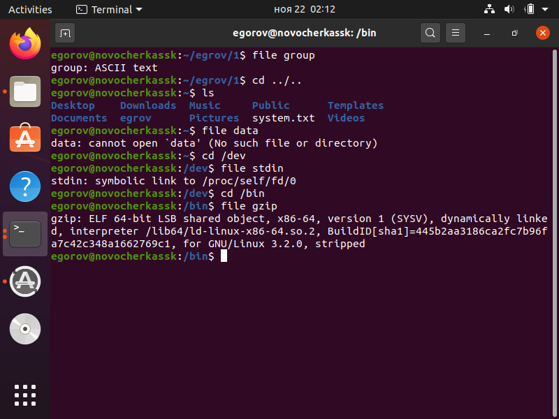 8. С помощью утилиты file вывести на экран сведения о 3 - 4 различных файлах (в том числе из каталогов /bin и /dev).