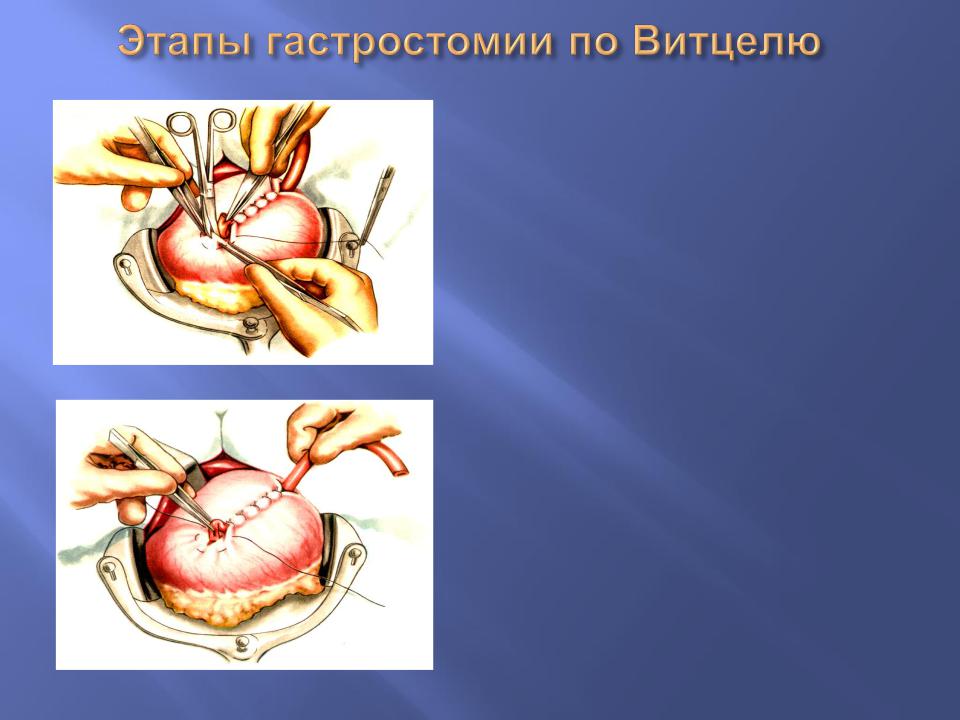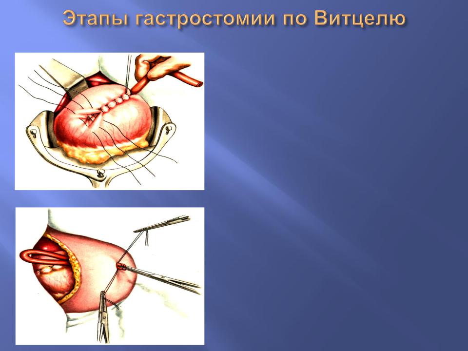 10 “Ключом” операции является выполнение гастропексии – подшивание серозной оболочки желудка вокруг трубки к париетальной брюшине передней брюшной стенки.