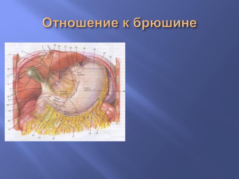 Желудок расположен по отношению к брюшине