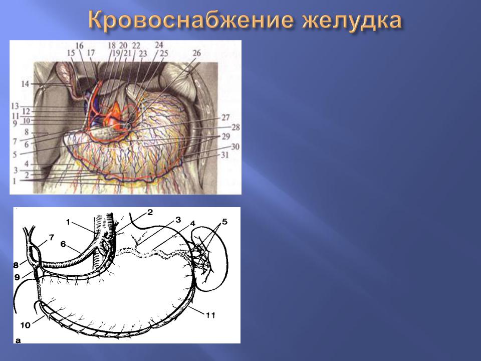 Между листками связки вдоль большой кривизны желудка анастомозируют