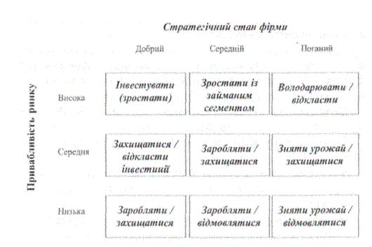 стратегічне положення/привабливість ринку й визначається стратегія фірми