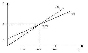 К методам ценообразования на основе издержек производства относится расчет цен на основе анализа безубыточности и обеспечения целевой прибыли. Графическое определение точки безубыточности (BSV) дано на рисунке 1.