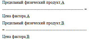 каждого данного фактора при достижении равновесия между его ценой и ценой
