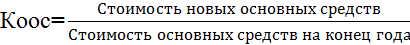 на конец года и коэффициенты выбытия и обновления основных средств.
