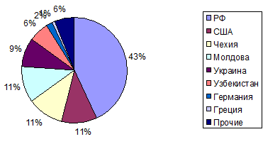 Распределения трудовых мигрантов Беларуси по странам выезда