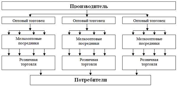 Производитель Оптовая торговля 1\ 2\ 3\ 4\ … n Розничная торговля 1\2…1\2…1\2… |