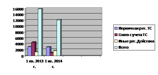 В 1 кв. 2014 г. было зарегистрировано 9501 ТС, уменьшилось количество операции по регистрации транспортных средств на 3,5%.
