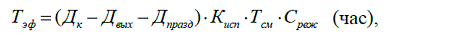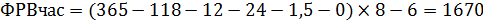 ФРВ - эффективный фонд рабочего времени, час.
