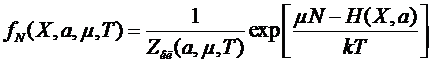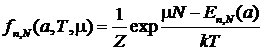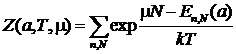 это распределение называется Большое каноническое распределение Гиббса. Здесь μ - химический потенциал системы, который характеризует изменение термодинамических потенциалов при изменении числа частиц в системе на единицу.