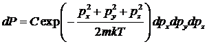 вероятность какой-либо молекуле иметь импульсы в заданных промежутках