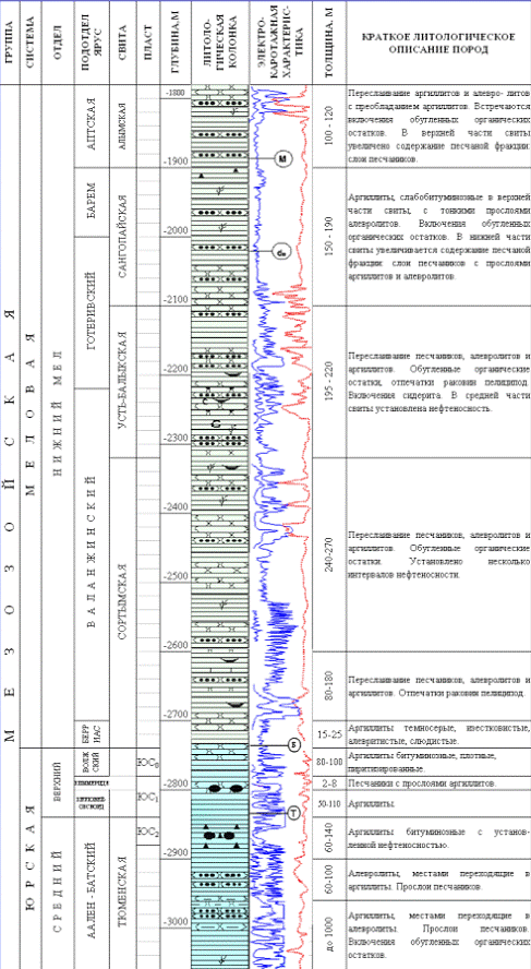 К верхней части свиты приурочивается нефтеносный песчаный пласт ЮC2. Вскрытая толщина изменяется от 42 до 298 м соответственно.