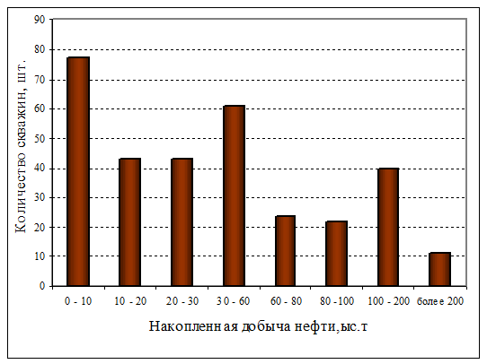Рисунок 2.3 - Распределение скважин по накопленному отбору нефти