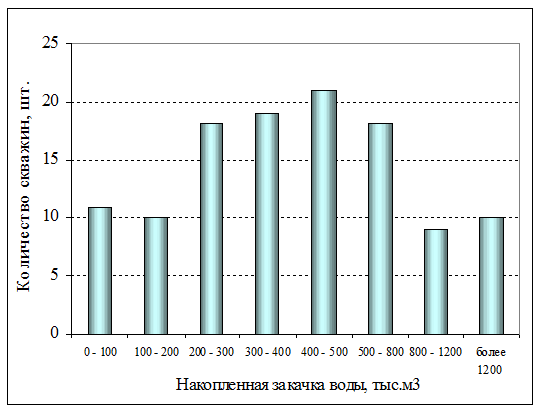 Рисунок 2.4 - Распределение скважин по накопленной закачке воды