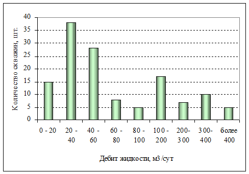 Рисунок 2.5 - Распределение действующих скважин по дебиту жидкости