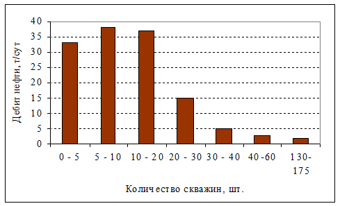 Рисунок 2.6 - Распределение действующих скважин по дебиту нефти