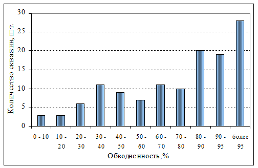 Рисунок 2.7 - Распределение действующих скважин по обводненности