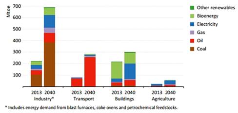 уголь, транспорт - на нефть, строительство - на электричество и биомассу,