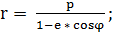 Траектория, или орбита, точки В представляет собой кривую второго порядка, причем р - ее фокальный параметр, а е - эксцентриситет.