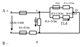 Определяем общее сопротивление цепи относительно вводов СЕ. Резисторы RCD и R2 включены параллельно, поэтому RCЕ=RCDR2/(RCD+R2) = 6·3/(6+3)= 2Ом