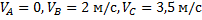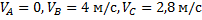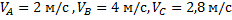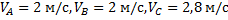 )Колесо катится без скольжения со скоростью 2м/с.Каковы скорости точек А,В и С обода колеса относительно дороги?