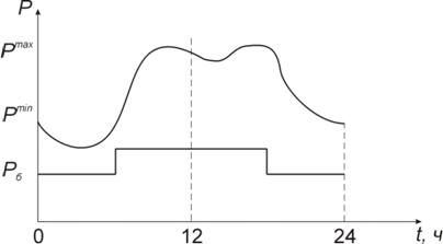 Разница между дневным максимумом Рmax и ночным минимумом Рmin в большей степени зависит от доли промышленного электропотребления и климатических условий. Часть нагрузки P6(t) покрывается базовыми электростанциями, к которым относятся наиболее экономичные блоки конденсационных ТЭС, атомные станции, ГЭС в период паводков, режим которых по тем или иным соображениям считается заданным. Например, для ТЭЦ электрический режим зависит от графика выработки тепловой энергии. Оставшуюся часть графика электрической нагрузки делят на полупиковую и пиковую. Покрытие нагрузки в полупиковой части выполняют КЭС средних параметров и в пиковой части - ГЭС, ТЭС среднего давления и гидроаккумулирующие станции (ГАЭС). Отнесение станций к базовой, полупиковой и пиковой частям графика электрической нагрузки определяется их маневренностью и экономичностью.