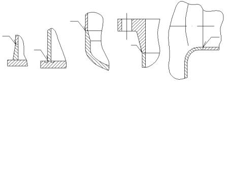 Штуцеры, плоские днища, фланцы приваривают тавровым, угловым или стыковым соединением. Для обеспечения равностенности свариваемых элементов следует предусматривать плавные переходы при сварке обечаек, днищ и фланцев разной толщины (рис. 3.9). Сварные швы должны быть доступны для осмотра и контроля.