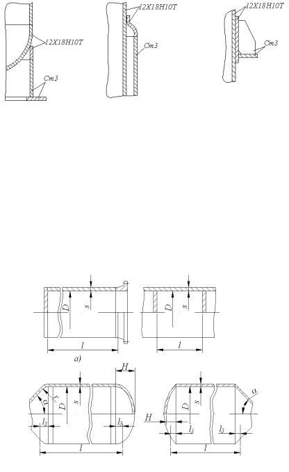 Рис. 3.10. Варианты соединения элементов корпуса, изготовленных из высоколегированной и углеродистой стали:
