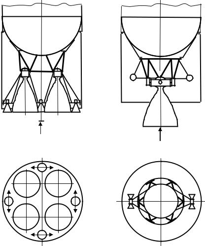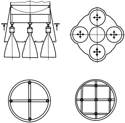 Рис. 10.11. Хвостовые отсеки РН с двухкамерными двигателями