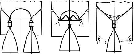 На рис. 10.10 представлены компоновочные схемы хвостовых отсеков с передачей усилий от двигателей на баки, днища которых выполнены комбинированными или коническими. Комбинированные днища имеют коническую форму внешней части и сферическую форму внутренней части с обратной кривизной. Места соединения