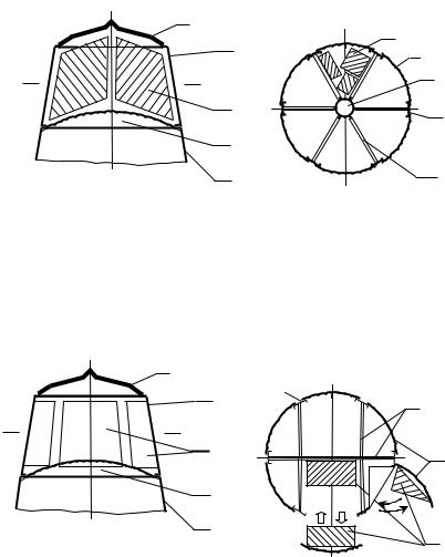 Компоновочные схемы приборных отсеков представлены на рис. 10.28 и 10.29. На этих рисунках введены следующие обозначения: 1 - защитный экран; 2 - корпус приборного отсека; 3 - зона размещения приборов; 4 - днище бака; 5 - бак топливный; 6 - приборы; 7 - крышка