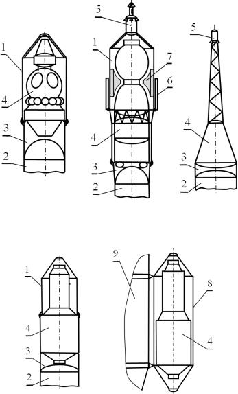 Схемы компоновки космических головных частей и контейнеров полезной нагрузки приведены на рис. 10.31 и 10.32.