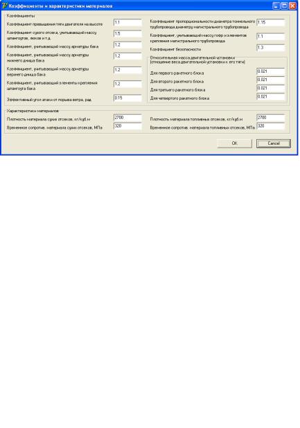 На рис. 14.7 представлено окно для ввода координат элементов в составе РН, а на рис. 14.8 – геометрические характеристики отдельных элементов.