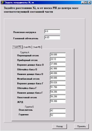 Исходные данные по массам составных частей РН берутся из результатов расчета, полученных с помощью предыдущей программы (см. подраздел 14.2).