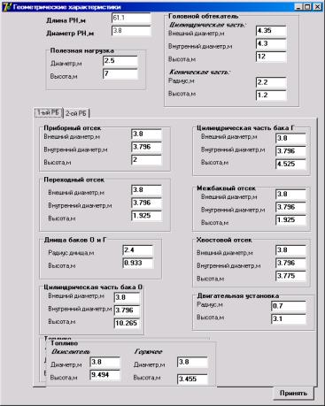 Рис. 14.8. Окно для ввода геометрических характеристик отдельных элементов РН