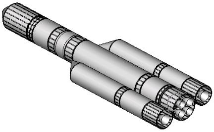 Рис. 15.17. Твердотельная модель РН с двумя боковыми блоками