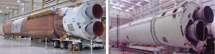 На рис. 17.13 слева показана РН Atlas V (США) с российским двигателем РД-180, которые производятся в ОАО «НПО Энергомаш имени академика В. П. Глушко». Грузоподъёмность РН Atlas V в различных конфигурациях составляет от 9,8 до 29, 4 т на низкую опорную орбиту и от 14,75 до 13 т на геопереходную орбиту.