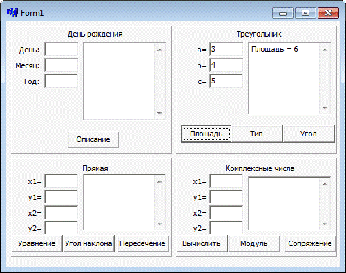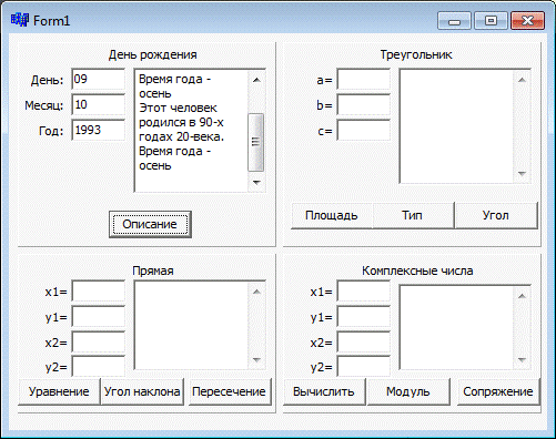 созданы нами же. Она имеет вид формы, на которой расположены четыре панели,
