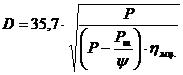 ψ = D2 /(D2 − d 2 ) - коэффициент мультипликации, равный отношению