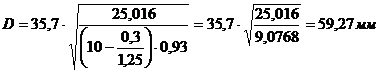 Принимаем D=60 мм. ( по табл.5, Юшкин В.В.)