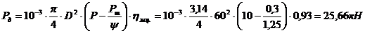 где Р - заданное рабочее усилие, [кН]; р - рабочее давление при входе, [МПа];