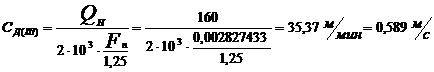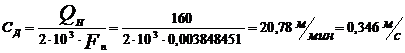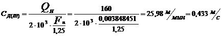 , [м/мин] рабочего хода поршня в поршневую полость с