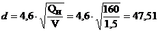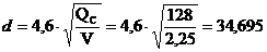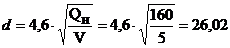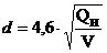 диаметр трубы или резинометаллического рукава (мм) определяется по формуле: