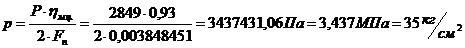 Давление в поршневой полости гидроцилиндра: Р=3437431,06 Па