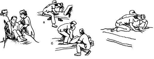 положенной под б е д р а м и , взять помощника за запястье («двойной запястный за хват») — с м . рис . 2.10, б.