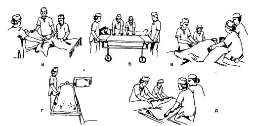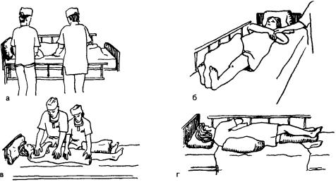 Пр и м е ч а н и е . Если пациент очень тяжелый, понадобится больше л ю д е й и п р и дется перераспределять нагрузку.