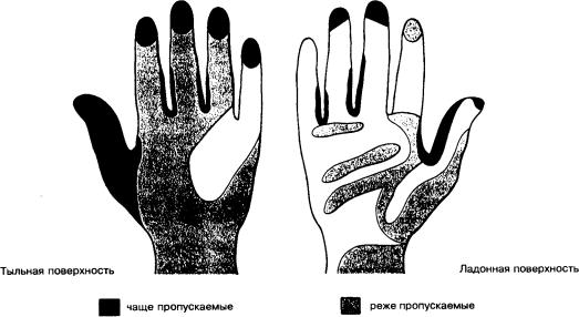 Рис. 1.2. Участки, пропускаемые при мытье рук