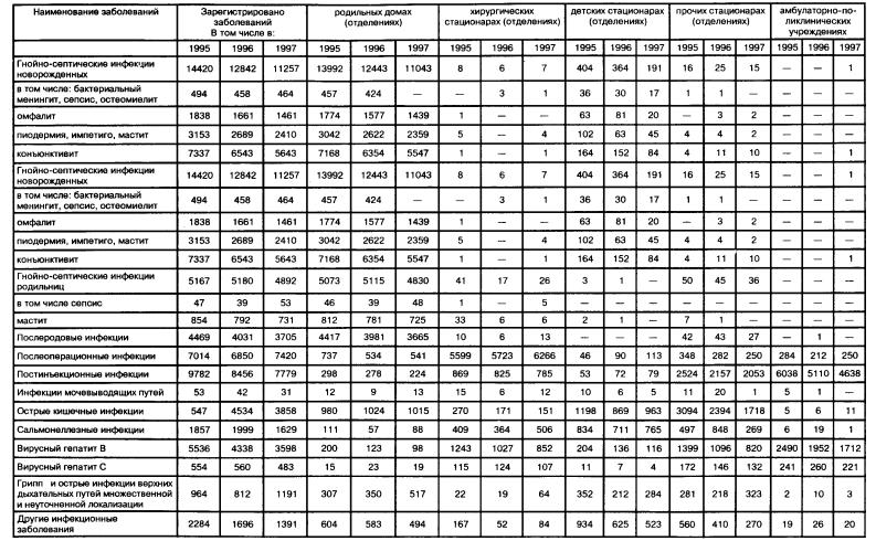 Внутрибольничные инфекции в Российской Федерации за 1995-97 гг.*