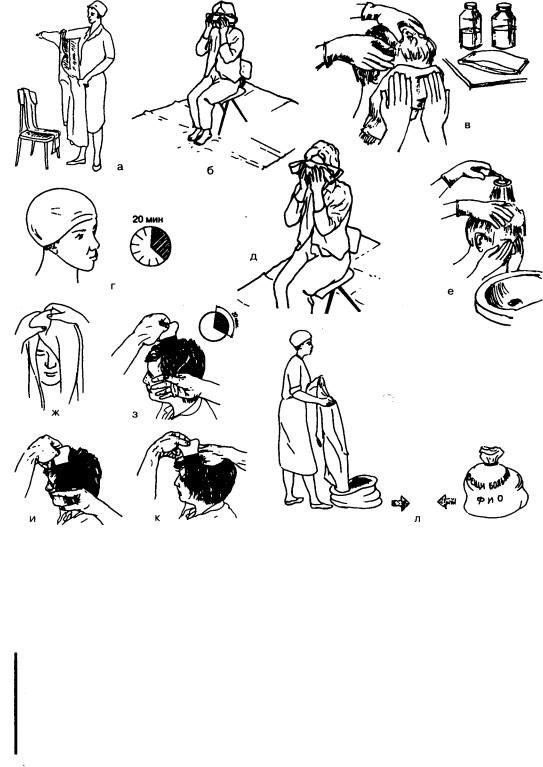 П о м о щ ь п а ц и е н т у во в р е м я г и г и е н и ч е с к о г о д у ш а и м ы т ь я г о л о в ы (рис . 3.6)