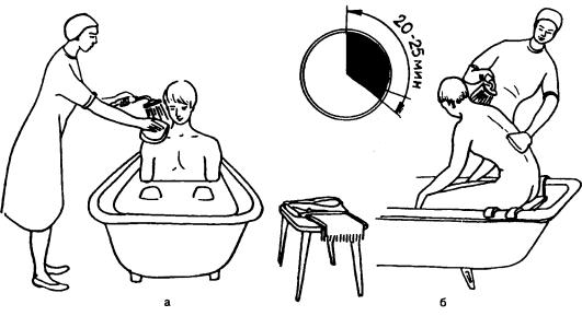 5. Помочь пациенту удобно расположиться в ванне: воду наполняют до уровня |