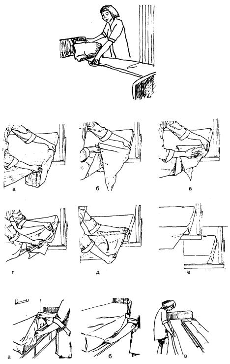 П р и м е ч а н и е . Не трясти простыню, поскольку пыль, микроорганизмы р а с п р о с